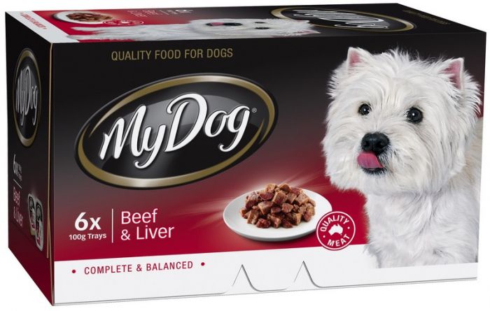 My Dog Beef & Liver My Dog provides 100% complete and balanced nutrition for your best friend in a great range of tasty recipes. A meaty classic, this Australian made recipe features a delicious combination of beef and veal for a tender, complete and balanced meal with no added preservatives that your dog will love.