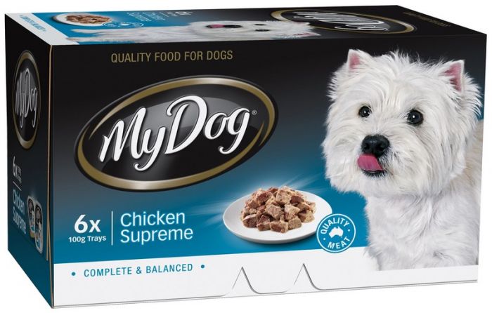 My Dog Chicken My Dog provides 100% complete and balanced nutrition for your best friend in a great range of tasty recipes. A meaty classic, this Australian made recipe features a delicious combination of beef and veal for a tender, complete and balanced meal with no added preservatives that your dog will love.