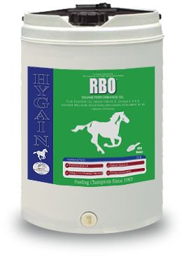 Same trusted and proven formula in a great new look! HYGAIN® RBO® Equine Performance Oil is a unique blend of pure rice bran oil, omega essential fatty acids and natural antioxidants formulated for all equines. The bran is left over from the process used to produce white rice for human consumption. The oil is extracted from the bran by a process which protects the integrity of the nutrients. In the case of RBO® Equine Performance Oil, the oil is then further refined by a method which also deodorises and enhances the palatability of the product. Pure Rice Bran Oil, Natural Vitamin E, Omega 3, 6 and 9 essential fatty acids and primary antioxidants formulated for all equines. The increases energy content of diet without fizz reduces excitability, increases oxidative capacity in performance horses and acts as a carrier for fat-soluble vitamins. Ideal for horses that require weight gain, high-performance horses, endurance horses, show and sales preparation, horses prone to tying up/stomach ulcers, poor doers and stud horses.