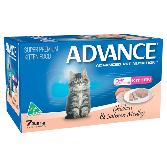 Advance cat food formulas deliver optimal nutrition for Australian pets using scientific knowledge and over 45 years of manufacturing experience. This super premium, Australian made, canned kitten food is complete and balanced to support the healthy growth and development of your kitten. It is designed to promote healthy digestion, contains added calcium and high quality protein to support growth and is fortified with DHA for healthy brain development.