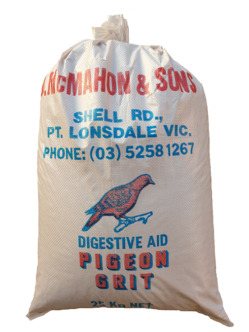 Mc Mahon's Pigeon Grit is made from crushed sea shells and is a popular mineral & calcium supplement and aids digestion in birds. Pigeon grit has added charcoal and an additive which makes the grit more attractive to pigeons and gives it its pinkish colour.