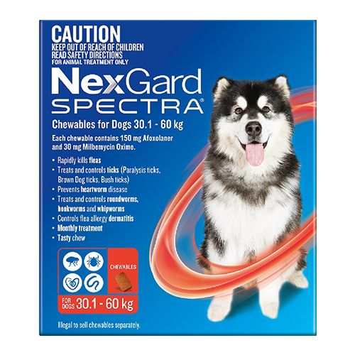 NexGard takes flea and tick prevention to the next level with its tasty, chewable tablet. It’s the first oral treatment to control fleas and ticks for a full month. The reason for its success is Afoxolaner, a fast-acting and long-lasting molecule developed specifically for flea and tick control. So forget about the messy back-of-neck treatment – one tablet is all you need to keep your dog safe and protected from those little nasties. Product description suitable for dogs weighing 30-60kg provides treatment and protection for fleas and ticks administer monthly oral chewable tablet