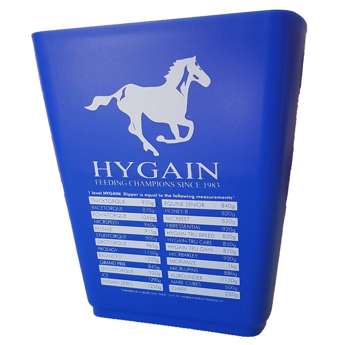 Our Australian made Hygain feed dippers/scoops are strong, durable and have a flat base which is great for scooping up the last bit of feed. Each Hygain dipper comes with a feeding guide that lets you know the weight of every HYGAIN feed in one full HYGAIN dipper.