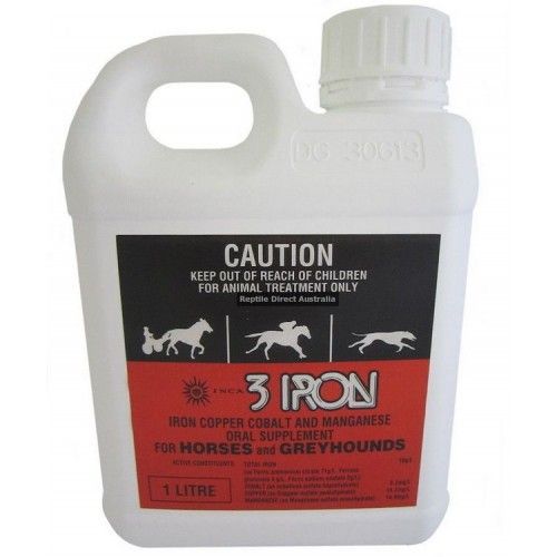 Inca 3 Iron for horses and greyhounds is an iron, copper, cobalt, and manganese oral supplement. 3 iron is an easily assimilated, non-irritant iron supplement containing chelated iron and elements such as copper, cobalt, and manganese for the assistance of the incorporation of iron into haemoglobin. Anaemia may be caused by internal parasites, training and racing stress and nutritional imbalance, 3 iron liquid is formulated to help restore haemoglobin to optimum levels.