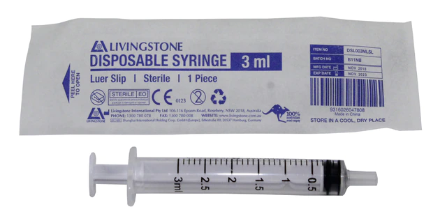LIVINGSTONE Syringe 3ml Box 100 (Slip Eccentric)