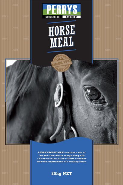 PERRYS HORSE MEAL uses carefully selected ingredients to create a horse feed that provides a constant source of energy important for horses in work. PERRYS HORSE MEAL vitamin and mineral levels are formulated o meet the requirements of horses with a light to heavy work load.
