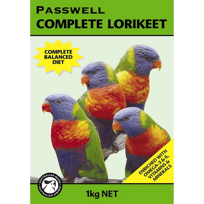 Passwell Complete Lorikeet is a complete balanced diet for pet, aviary or wild lorikeets. Complete Lorikeet contains all essential nutrients to maintain healthy Lorikeets and can be fed wet or dry. This is a granular powder that is a complete balanced diet for pet, aviary or wild lorikeets. The product can be fed dry, straight from the pack, or mixed with the desired quantity of water to produce a wet mix. Remove soiled or uneaten food daily and replace with fresh food. Some lorikeets will load their drinking water with dry food so always ensure that fresh water is available.