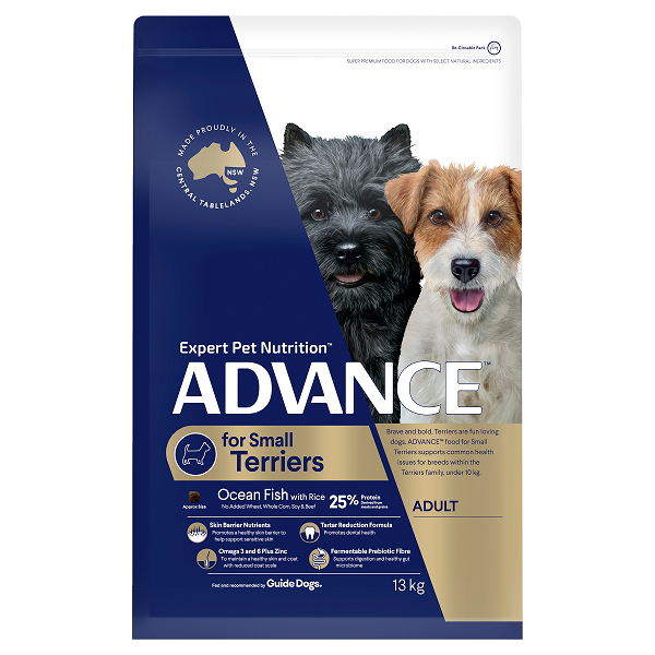 ADVANCE for Small Terriers Dry Dog Food delivers optimal nutrition for Australian pets by combining global science with local expertise and select natural ingredients. ADVANCE products are uniquely formulated for Australian pets.