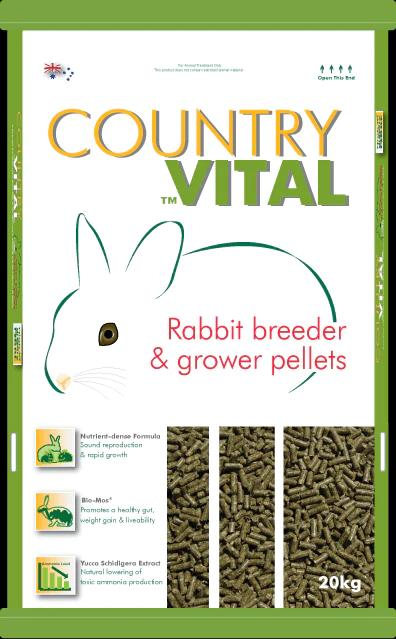 Hygain Country Vital Rabbit breeder and grower pellets.