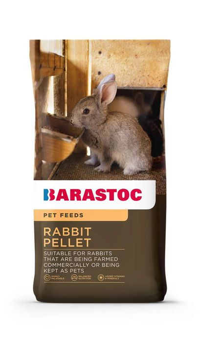 Barastoc Rabbit Barastoc Rabbit Pellet is a nutritionally complete and balanced pelleted feed for rabbits being farmed commercially. What will it provide my animals? Contains highly palatable and nutritious ingredients that appeal to rabbits, including cereal grains and fresh lucerne. Includes a vitamin and mineral supplement specifically formulated to meet the nutritional requirements of rabbits to help keep them healthy. Provides sodium butyrate to aid digestive health. What’s in it? INGREDIENTS SELECTED FROM THE FOLLOWING: Cereal Grains and their By-Products, Lucerne Meal, Legumes and their By-Products, Vegetable Protein Meals, Calcium Carbonate, Mono-Di Calcium Phosphate, Salt, Vegetable Oil, Ridley Vitamin and Mineral Premix, Essential Amino Acids, and Sodium Butyrate.