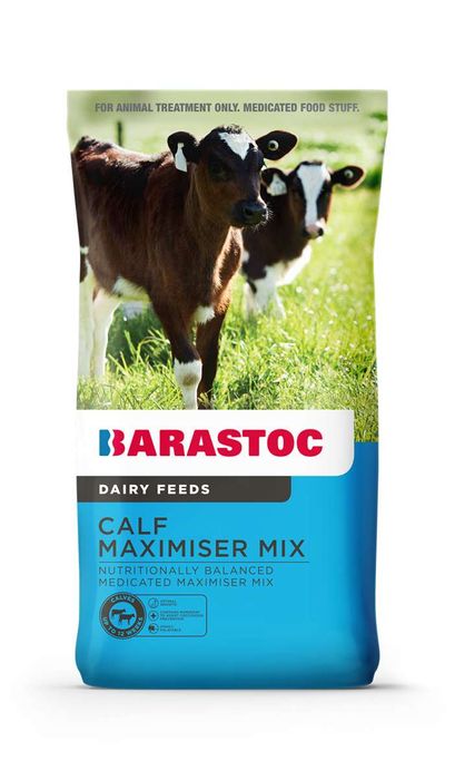 Barastoc Calf Maximiser Barastoc Calf Maximiser is a palatable and nutritionally balanced medicated formulation to meet the nutritional requirements of calves up to 12 weeks of age. What will it provide my calves? High quality protein sources for optimal calf growth (urea excluded). Balanced mineral and trace elements with added vitamins A, B (1, 2, 6 and 12), D3, E and K3 to help maintain calf health and performance. Contains 56 mg/kg Monensin (as Rumensin®) in dry matter for improved feed conversion efficiency and as an aid in the prevention of coccidiosis. Added rumen buffering agent. Palatable ingredients in a molassed meal form to reduce separation and selection. Ingredients selected from cereal grains and cereal by-products, legumes and legume by-products, vegetable protein meals, molasses, fats and oils, minerals, trace elements and vitamins. What’s in it? Ingredients selected from the following: Cereal Grains and their By-Products, Legumes and their By-Products, Vegetable Protein Meals, Molasses, Fats and Oils, Minerals, Trace Elements and Vitamins.
