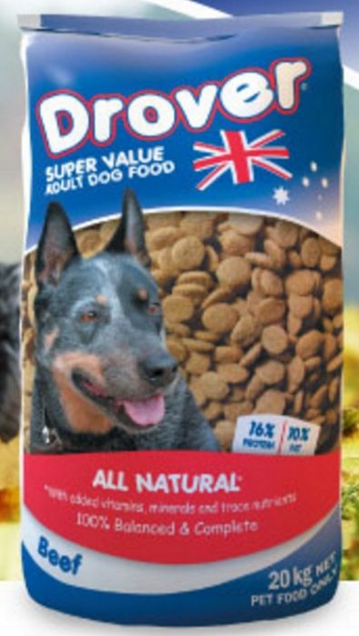 Why your mate chooses DroverĀ®? Contains no artificial colours or flavours Based on natural cereals, beef and chicken for optimum digestibility and taste Contains omega 3 and omega 6 fatty acids for healthy skin and a glowing coat Added garlic and kelp and over 23 vitamins and minerals for good health Contains natural antioxidants to help protect cells against oxidative damage and boost the immune system Formulated to meet the nutritional requirements established by The Association of American Feed Control Officials (AAFCO)