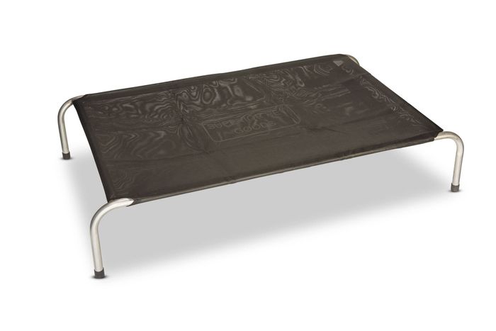 Our dependable galvanised steel frame with an extra durable flea-free cover in stylish black. This cover was made to withstand harsh environments from poly-coated Textilene shade cloth known for its ultra-durability. Any dog will love the open-weave and breathable fabric which is sag resistant and is 430 GSM. You’ll like its high resistance to tears and mildew and its longevity. The seams are sewn, then heat-welded for extra-strength, making this ideal for rougher dogs. The cover is fitted with VELCRO® tabs and is washable. Like all Superior Pet Goods beds the Raised Dog Bed is guaranteed for life. We will repair or replace any product or part that is not up to scratch. Large 112 x 69 x 22
