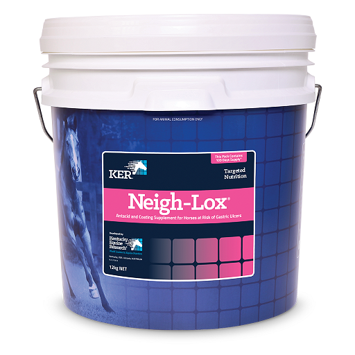 Prolonged exposure of the stomach to gastric acid can cause damage to the stomach lining, resulting in a painful condition for the horse. Horses with stomach damage can show irritability, poor appetite, and resistance to work. Research has shown that as many as 90% of horses in training have some level of stomach damage. Neigh-Lox® is designed to protect the digestive tract against excess gastric acid and provide a physical protective lining in the stomach and small intestine. Suitable for horses which may be at risk of gastric irritation, gastric sensitivity, loss of appetite, loose manure, weight loss, in training or work, on high grain diets, experiencing stressful conditions e.g. travel, show/sales preparation, during weaning, experiencing changes in feeding routine or reduced forage intake, prone to loss of appetite after work, competition or travel, have stable vices or abnormally unsettled behaviour. Neigh-Lox is scientifically formulated to maintain normal digestive function in horses at risk of stomach damage.