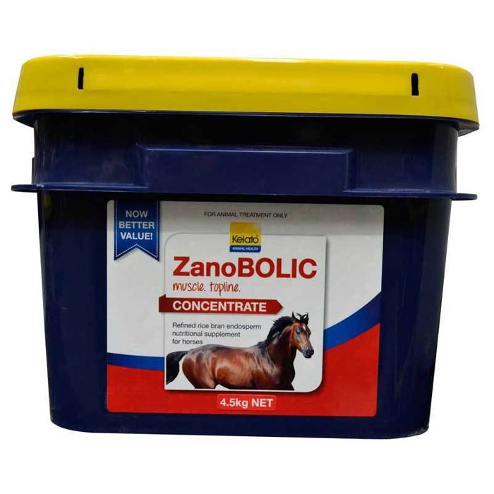 A lysine and refined rice bran embryo extract supplement that aids in the development of lean muscle, topline and improves coat condition. What is ZanoBOLIC? ZanoBOLIC concentrate is a lysine and refined rice bran embryo extract (gamma oryzanol) supplement that aids in the development of lean muscle, topline and improves coat condition. How does ZanoBOLIC concentrate work? Gamma oryzanol is a crystalline powder separated and extracted from rice bran oil and rice embryo oil. The gamma oryzanol molecule has a similar molecular structure to a testosterone molecule, thus giving it anabolic properties. Gamma oryzanol contains two molecules – sterol and ferulic acid. Ferulic acid is a compound that possesses very strong antioxidant properties, while sterols have many biological functions – throughout nature they are the starting point for the creation and synthesis of hormones, which are pivotal to cell, muscle and body function. Gamma oryzanol has a two-fold effect on high performance athletes: Anabolism – Gamma oryzanol has a stimulant effect on growth, lean muscle mass and strength. It has an effect on the body’s endocrine (hormonal) system resulting in increased metabolism of fat and increased synthesis of protein. In horses, the effects of gamma oryzanol supplementation can be seen as an improved muscle to fat ratio (greater muscle definition over the withers, shoulders and hind quarters). Antioxidant – During high intensity exercise, free radicals are released into the muscles and damage cell membranes. Antioxidants, such as the ferulic acid in gamma oryzanol, help to protect the membranes from the deleterious effects of free radicals. Yearlings: Increase muscle mass and definition + topline + improved and darkened coat = Top dollar in sale ring Performance horses: Well developed muscle + topline + increased appetite = Stamina, strength and winning edge Show Horses: Topline + well defined muscles + coat condition = S