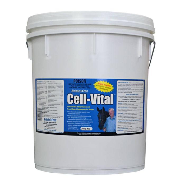 Cell-Vital Concentrated Trace-Mineral and Vitamin Supplement for all Working Horses Cell-Vital is a multi-vitamin and trace-mineral supplement which is ideal for resting or working horses when their diet is low or inadequate in nutrients required for overall health and vitality. Cell-Vital is highly economical and easy to feed many different horses, even if they are in various levels of training. It is suitable to balance all types of diets, especially as a top-up for a commercial feed diet of pelleted or mixed hard feeds which have reduced levels of the top quality micronutrients provided by Cell-Vital. Cell-Vital is designed to offset any loss of nutrients common during the processing and storage of grains, chaff, hay or prepared feeds. The concentrated dose ensures a nutritionally balanced diet, with results you can really see in your horse’s coat colour and intensity, performance and well-being.
