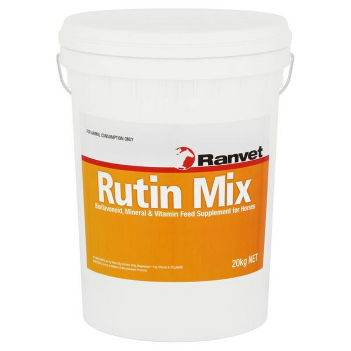 Ranvet Rutin Mix contains bioflavonoid compounds that aid in the prevention and treatment of 'bleeding' in racehorses, caused by capillary blood vessel fragility. Ranvet Rutin mix helps to improve blood circulation, strengthens and increases elasticity of blood vessels and capillary walls, improves lymphatic flow and function and can be supplemented as an immune system enhancement.