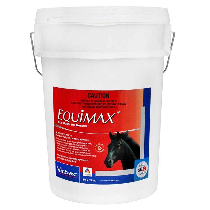 EQUIMAX® Australia's most trusted broad-sprectrum wormer for horses A broad-spectrum horse worming paste for the treatment and control of susceptible tapeworms and roundworms (including arterial larval stages of Strongylus vulgaris and benzimidazole resistant small strongyles), bots, and skin lesions caused by Habronema and Draschia spp. (summer sores) and Onchocerca spp. microfilariae (cutaneous onchocerciasis). WHAT IS EQUIMAX®? Allwormer effective on all susceptible equine internal parasites including all three species of tapeworm and all three species of bots Safe to use on all horses including foals, pregnant mares and breeding stallions Palatable oatmeal flavoured paste Developed and made in Australia Treats horses to 700kg RECOMMENDED FOR Use in adult horses, Equimax is an oatmeal-flavoured, palatable allwormer that effectively treats all major intestinal worms in horses, including all three species of tapeworm and all three species of bots Safe to use on all horses including pregnant mares and breeding stallions Each tube can treat horses up to 700 kg