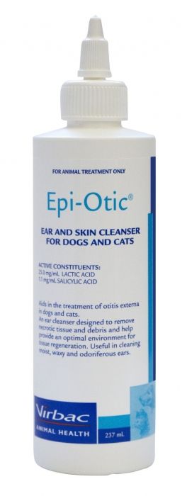 EPIOTICĀ® ear cleaner for dogs and cats EPIOTICĀ® antimicrobial ear cleanser contains actives which deal with a number of problems associated with ears as well as being an ideal ear maintenance product.