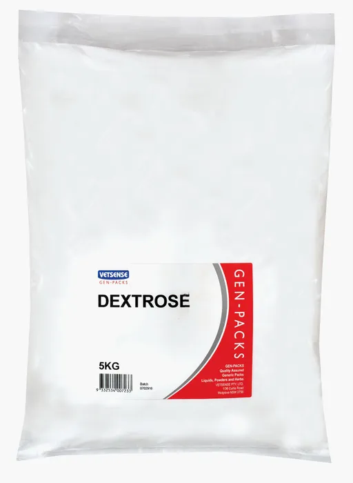 Vetsense Gen-Pack Dextrose 5Kg Vetsense Gen Packs Re-Packaged Raw Materials Are Supplied For General Use Only And Do Not Come With Dosage Or Administration Instructions. Please Consult Your Veterinarian Or Animal Health Specialist For Advice Specific To Your Needs.
