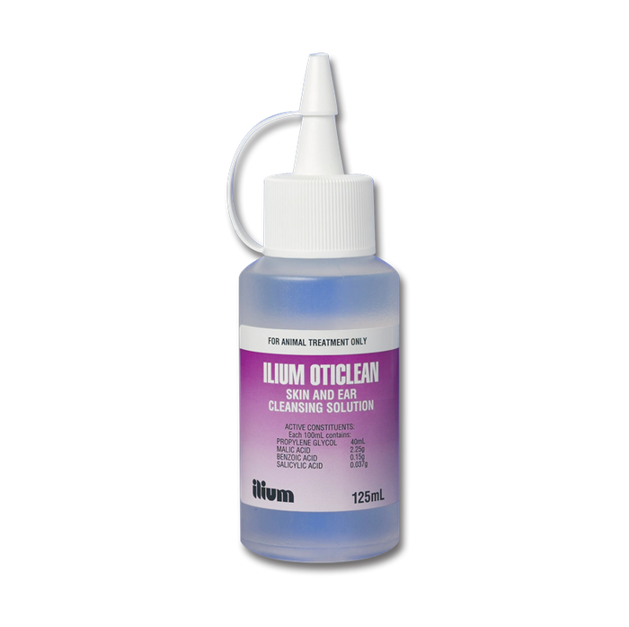 A solution containing PROPYLENE GLYCOL, MALIC ACID, BENZOIC ACID and SALICYLIC ACID as a cleansing agent for conditions such as otitis externa, wounds or abrasions where healing is impaired by the presence of necrotic tissue, debris or wax. For use in dogs, cats and horses. Available as a 125 mL bottle, or 500 mL plastic bottle spray.