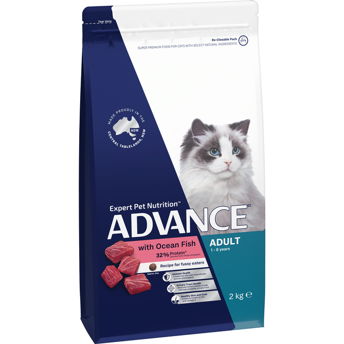 ADVANCE⢠Adult Dry Cat Food. Keep your older friend healthy and happy with a diet that's tailored to them. Packed with nutrients, antioxidants and prebiotic fibres for adult maintenance feeding, they'll have better dental health, a balanced gut and a shiny coat.